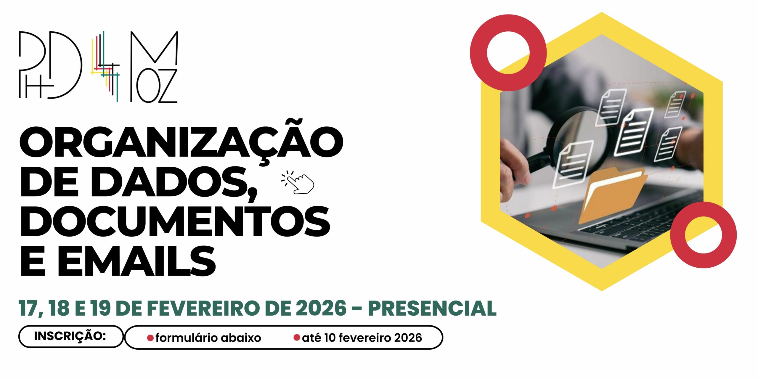 No âmbito do projeto PhD4Moz, estão abertas as inscrições para o Curso de Organização de Dados, Documentos e Emails, a decorrer nos dias 17, 18 e 19 de fevereiro de 2026, em formato presencial, na Faculdade de Medicina da Universidade Eduardo Mondlane (UEM).